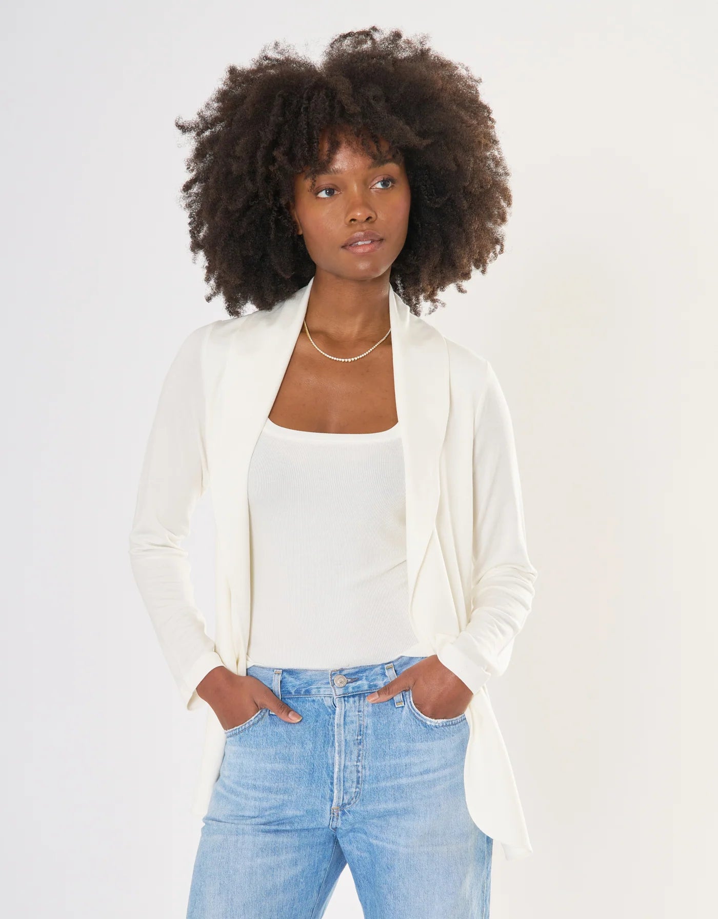 The Paris Blazer is the must-have travel piece for the sophisticate. Crafted in our cozy Heritage Fabric, and meticulously cut for a tailored look, this blazer is equal parts comfortable and chic. Wear to elevate sweats on the plane and with trousers or denim when you're at your destination.
